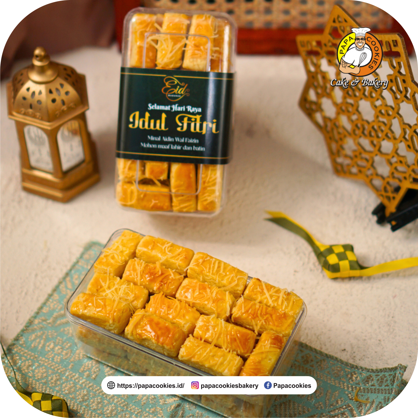 Kastengel by Papacookies hadir dengan versi yang lebih premium. Dengan bahan pilihan, rasa yang lebih nikmat, dan keju premium. Sensasi menikmati kastengel dengan rasa yang lebih classy. Pas banget untuk camilan di hari raya, atau dibagikan ke orang spesial.