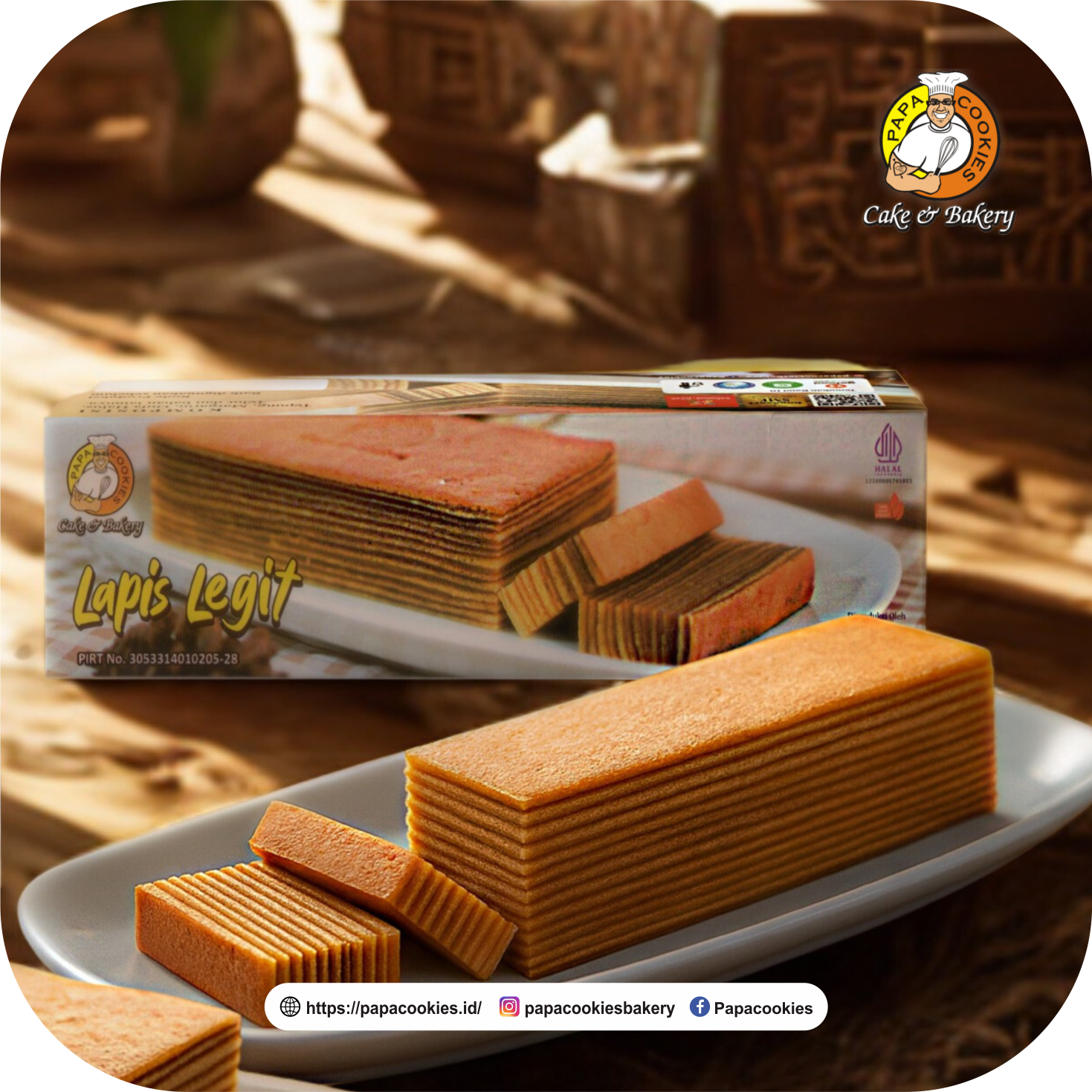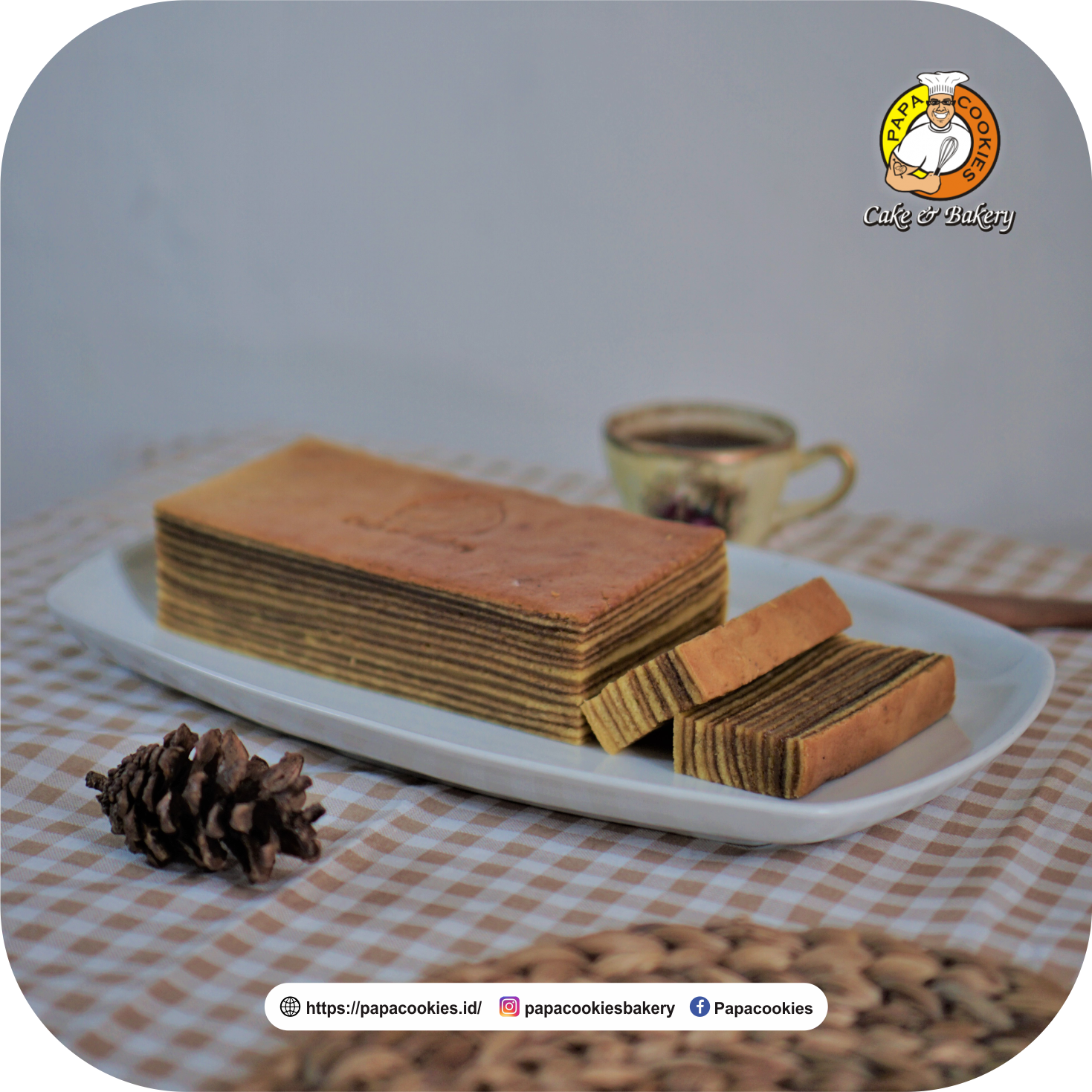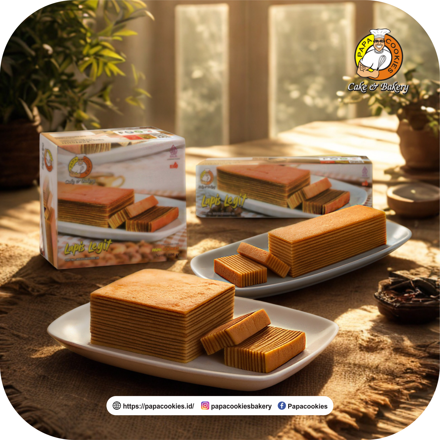 Rasakan kenikmatan lapis legit spesial by Papa Cookies. Kue lapis basah tradisional Indonesia yang kaya akan rempah, dengan tekstur yang lembut dan padat. Diproduksi dengan sepenuh hati sehingga menghasilkan rasa yang autentik khas Papa Cookies.