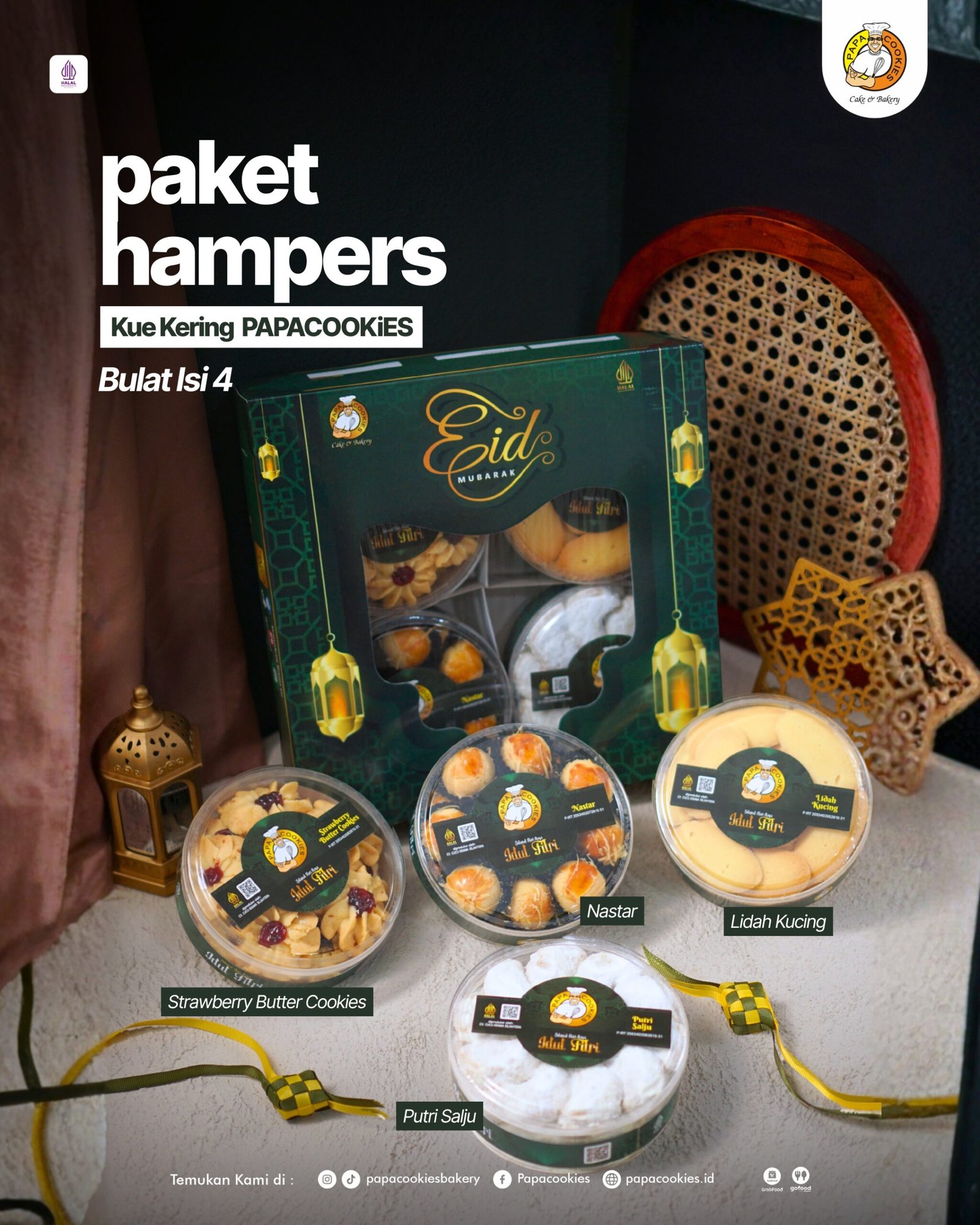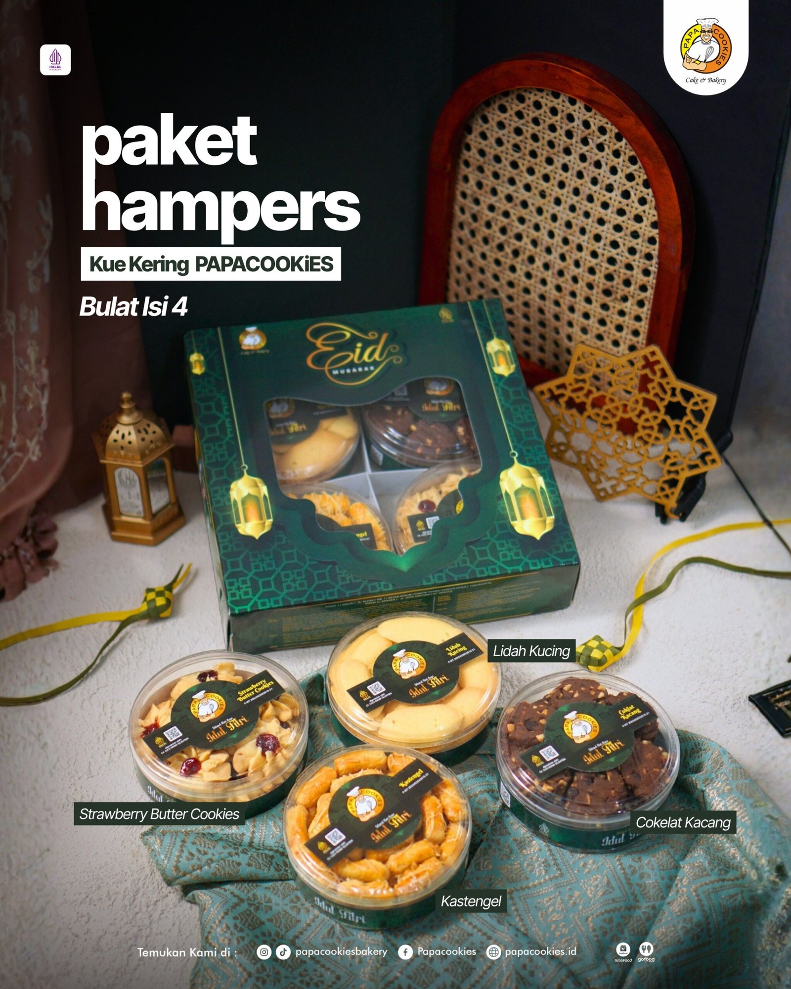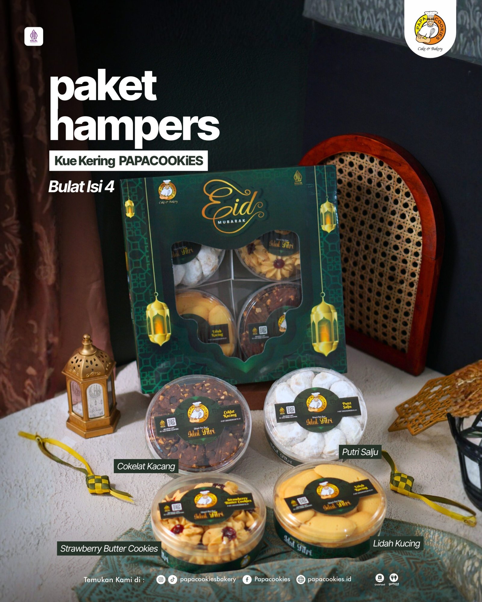 Aneka roti kering papa yang dikemas menjadi hampers yang simple & elegant ini siap menemani momen spesial hari raya Idul Fitrimu. Sangat cocok sebagai buah tangan untuk orang tekasih di bulan yang suci